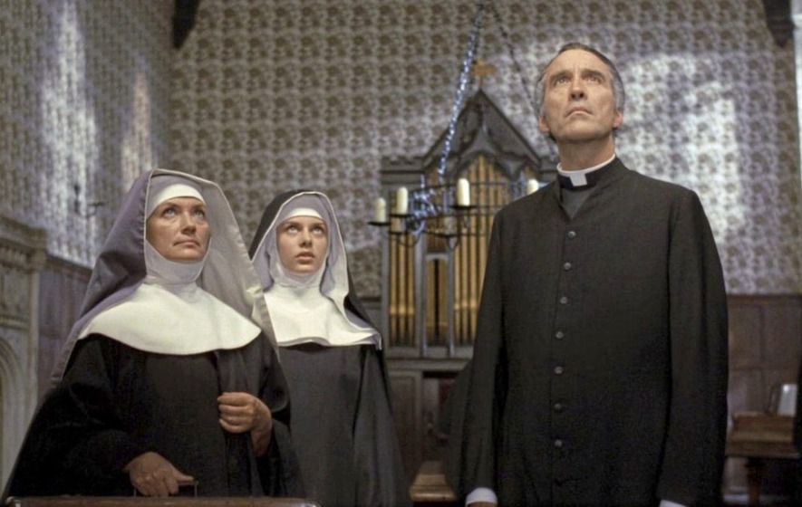 In the film Lee portrays an excommunicated Roman Catholic priest named Fr. Michael Rayner who starts his own Satanic religious order. He plans on using young Sister Catherine, who is about to turn eighteen, to summon the demon named Astaroth, who in turn will inhabit Catherine’s body. In Fr. Rayner’s way are Catherine’s estranged father, Henry, and an American occult writer and researcher named John Verney. Henry’s primary intentions, as it turns out, are to free him from a demonic pact that he made with Rayner. Verney, however, fully intends to stop Rayner and his evil order.