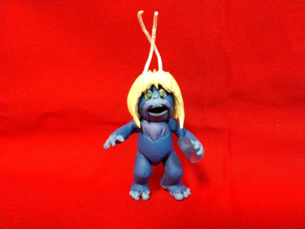 Note the paint chip on the left wrist exposing the purple cast and the chip on the left foot at the top of the ankle doing the same. In the middle is a closeup of Zuffy.