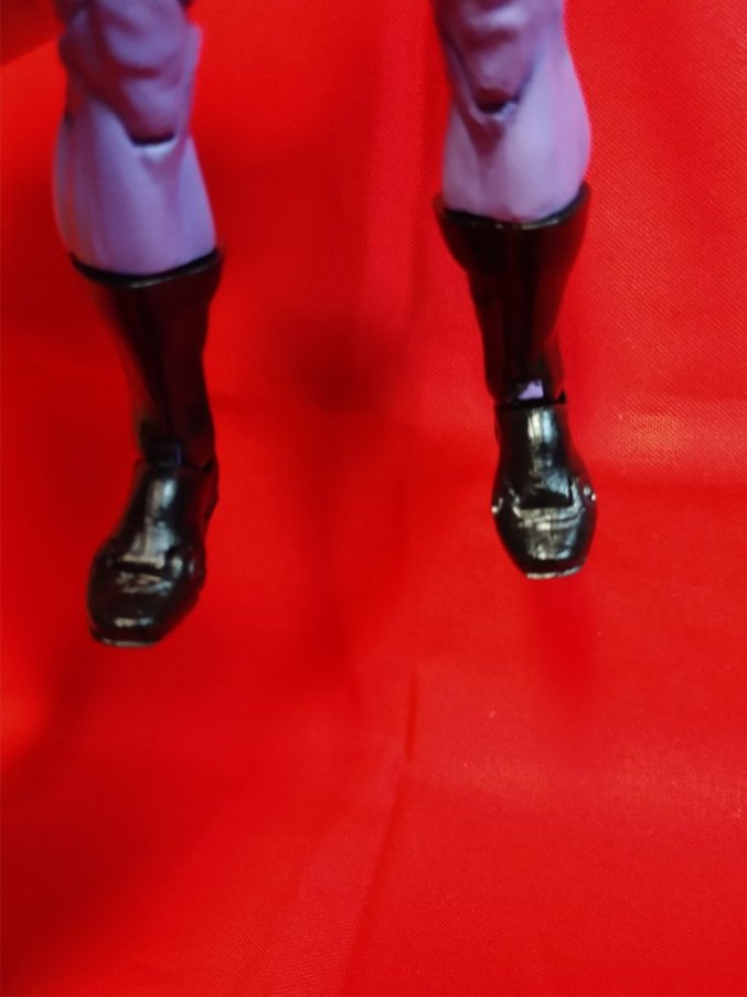 The figure is beautifully sculpted but it does have a few flaws. For starters, the aforementioned stiff articulation makes me a little hesitant to pose the figure too much. I currently have him standing with his right fist in the air and that’s probably how he’ll stay for the time being. Another major flaw is that the figure appears to have been cast in purple plastic and the hands, boots, belt, face, and muscle shading was painted on after the casting. That’s fine, but as soon as I took the figure out of the box, the left hand (you know, the only left hand) had paint chip off at the wrist and the paint on the left ankle POA also chipped giving me two bright purple blemishes on an otherwise perfectly painted figure.