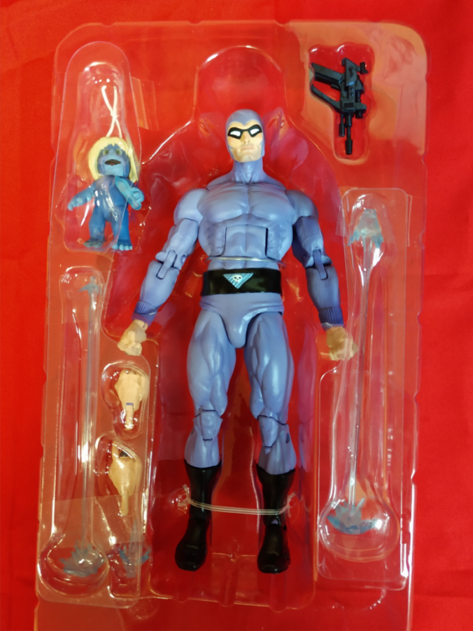 I like this figure for the most part. It features over twenty points of articulation (although most of them are extremely stiff) and comes with a ton of accessories. The Phantom’s little sidekick from the cartoon, Zuffy, is included and he features quite a few points of articulation as well. Accessories include a blaster, two blaster “firing” attachments, one ring “power” attachment, three swappable right hands and one left hand. I really wish that there were two right hands and two left hands, but we get three righties instead.