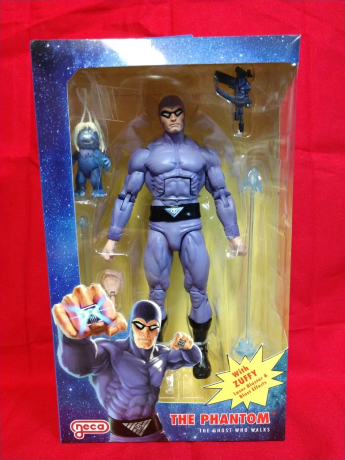 I’ve been waiting a long time for a quality figure of The Phantom to hit store shelves. Those who have been following my blog know that I fell in love with the character years ago while reading the comic strips and watching the Billy Zane 90’s film as well as the classic serial featuring Tom Tyler in the iconic role. Unfortunately, finding an action figure of The Phantom that was both reasonably priced and looked good was difficult. Thanks to NECA, my wait for a good figure is over. They recently began releasing their Defenders of the Earth action figure line and while it’s not necessarily the classic version of the character that I love, it’s close enough to please me.