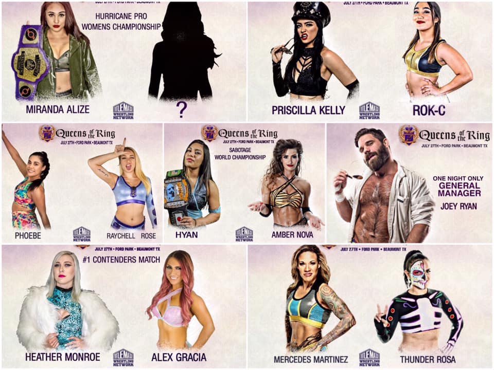 On Saturday, July 27th, my daughter and I made the hour plus journey to Beaumont, TX for what has become a monthly ritual for my family. We attended Hurricane Pro’s Queens of the Ring event at the Ford Park Exhibit Hall. The show featured five matches that offered up some of the best female wrestlers on the independent scene and a sixth match featuring an intergender battle. I’ll talk about that particular match in a little bit.